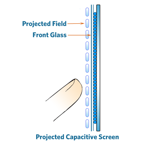 Multi-touch projected capacitive screen (Skim finger above glass to change screens)